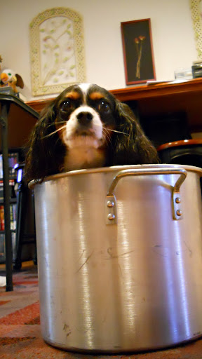 Also, for absolutely no reason at all, a picture of my dog in a pot.
