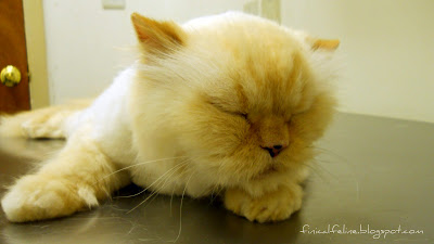 Then, I did something I rarely do. I didn't double check to see what "same as last time" was. I ended up doing the wrong thing. I thought I remembered what I had done last time. I assumed both cats got the same clip - a long comb clip. Only only cat got clipped, the other should have stayed in full coat. Entirely my fault and I felt horrible about it. I apologized up and down, but that doesn't change the fact that I made a mistake and did the wrong thing.